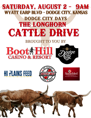 9AM | THE LONGHORN CATTLE DRIVE BROUGHT TO YOU BY BOOT HILL CASINO & RESORT AND THE DODGE CITY CONVENTION AND VISITORS BUREAU
